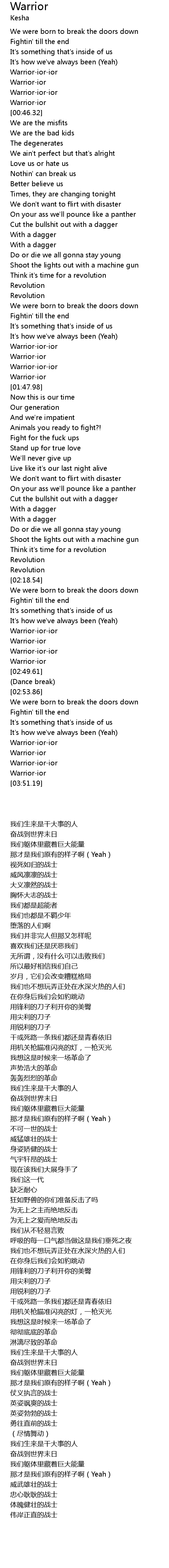 | [01:32.22] | Warrior-ior-ior |