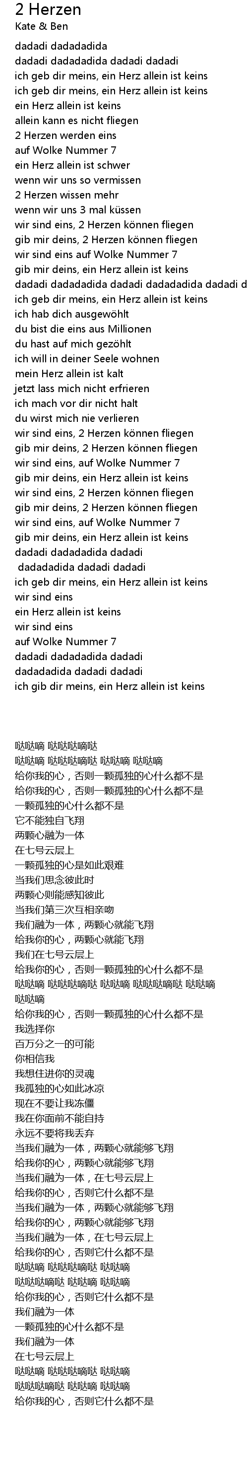 | [02:27.93] | gib mir deins, 2 Herzen k nnen fliegen |