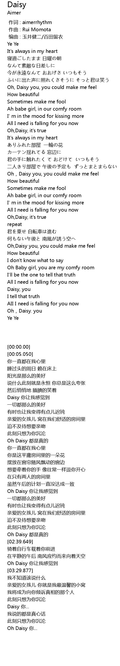 | [03:24.997] | Oh,Daisy you, you could make me feel |