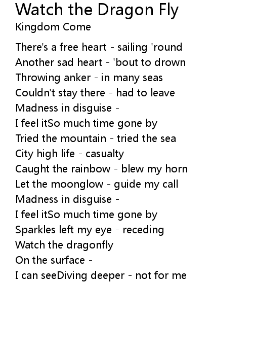 | Song | Watch the Dragon Fly |