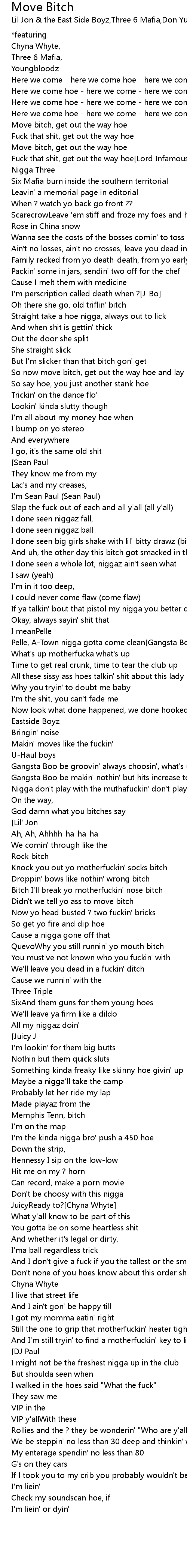 Fuck that shit, get out the way hoe[Lord Infamous] |
