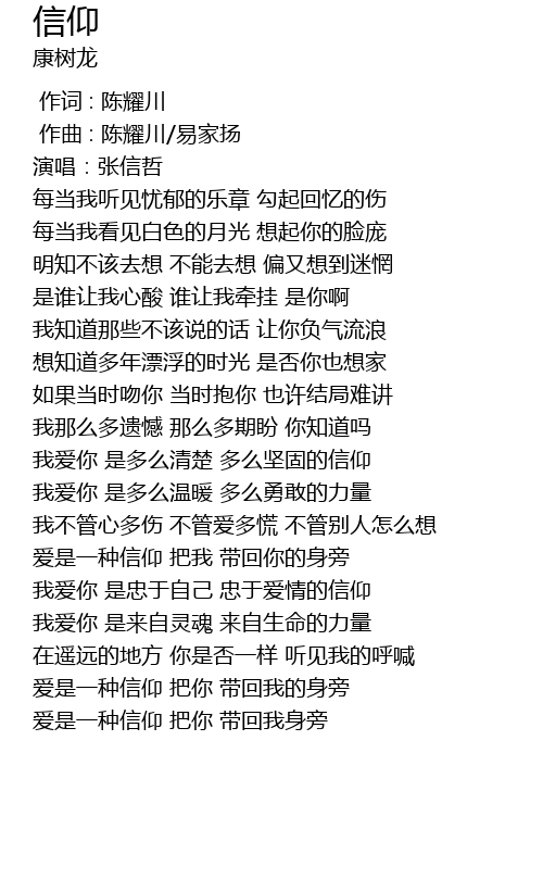 | [02:36.767] | 爱是一种信仰 把你 带回我身旁 |