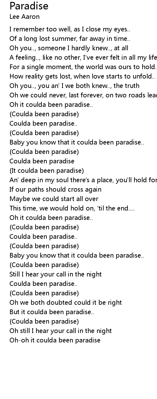 Baby you know that it coulda been paradise.. |
