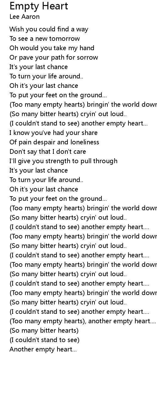 | (I couldn't stand to see) another empty heart... | |
