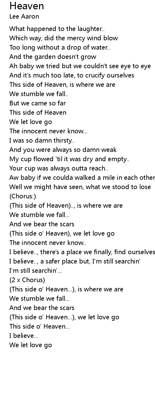 (This side o' Heaven...), we let love go |