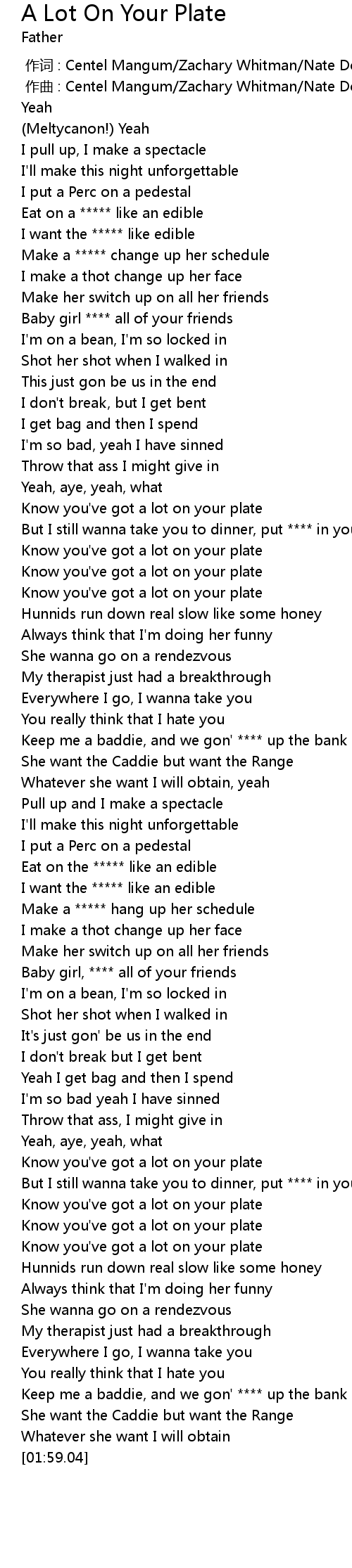 | [01:35.91] | Know you' ve got a lot on your plate |
