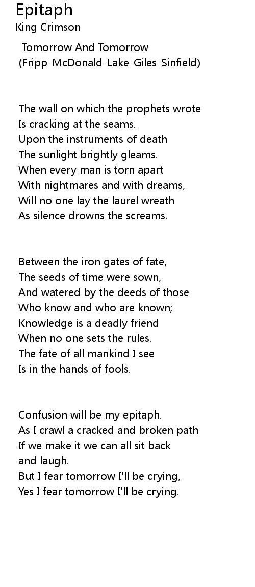 Yes I fear tomorrow I'll be crying. |