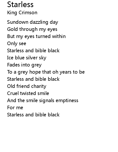 | Starless and bible black |
