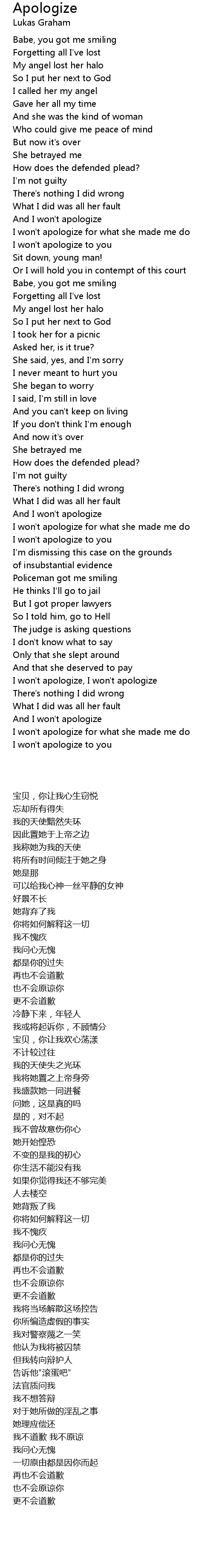 I won't apologize, I won't apologize |
