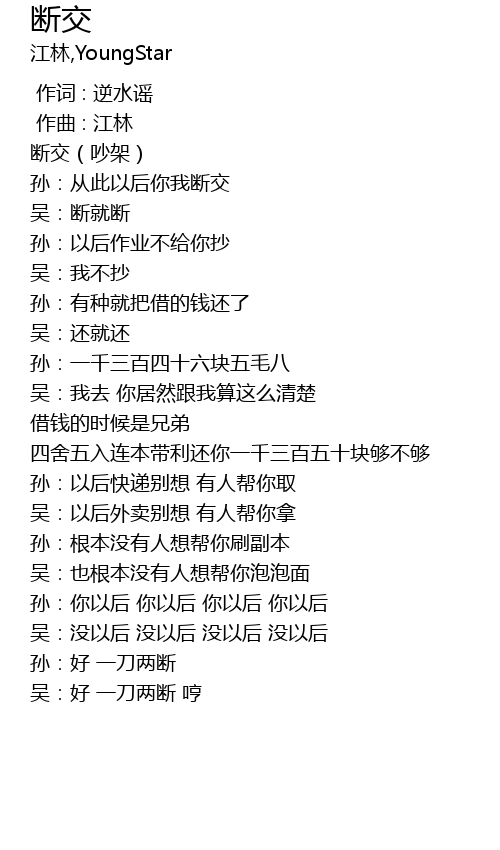 | [00:01.000] | 断交(吵架) |