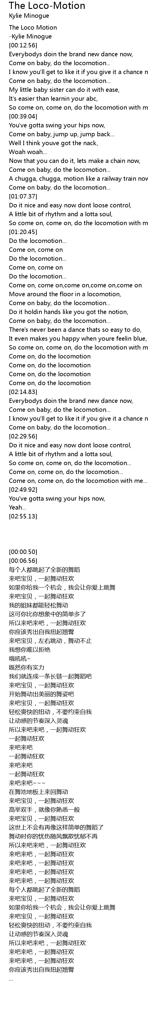 [02:19.34] Come on baby, do the locomotion...