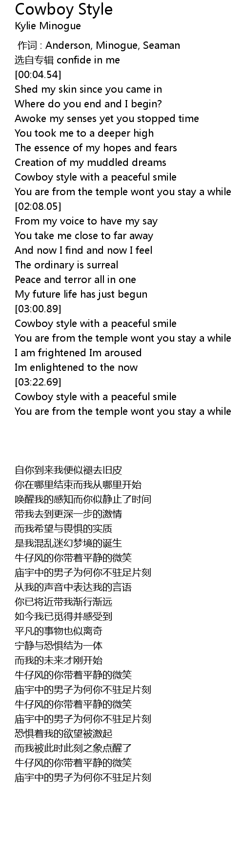 | [03:03.28] | Cowboy style with a peaceful smile |