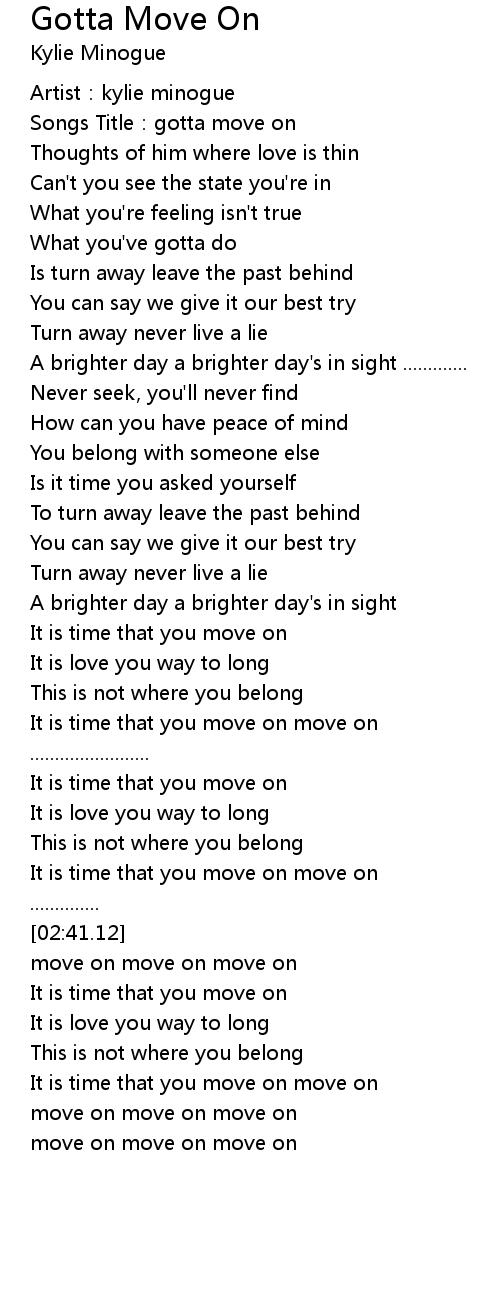| [00:02.26] | Songs Title: gotta move on |