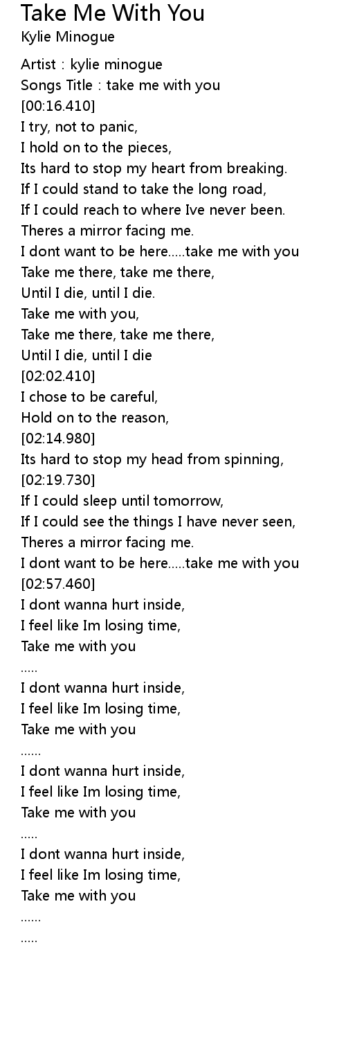 | [00:58.410] | Its hard to stop my heart from breaking. |