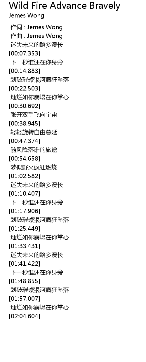 | [00:00.000] | 作词 : Jemes Wong |