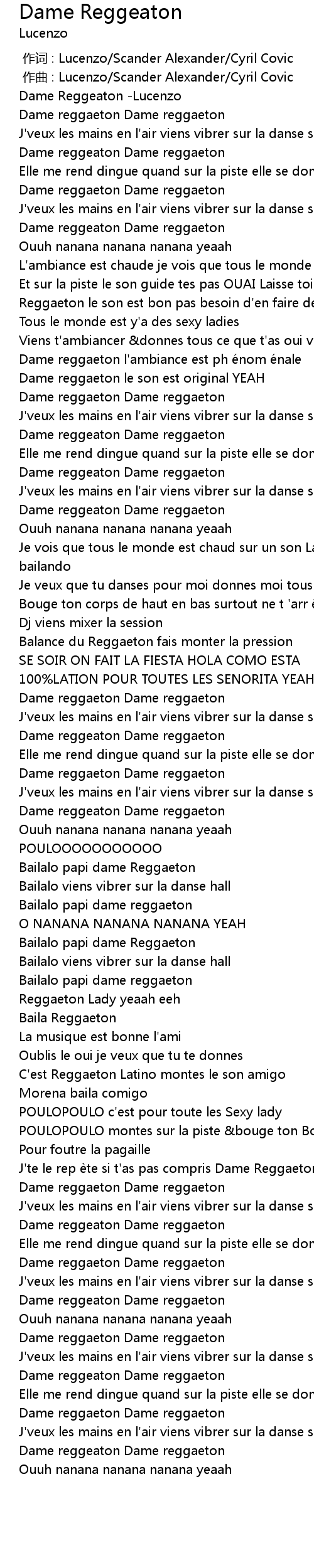 | [02:22.886] | J'te le rep ète si t'as pas compris Dame Reggaeton PAPI |
