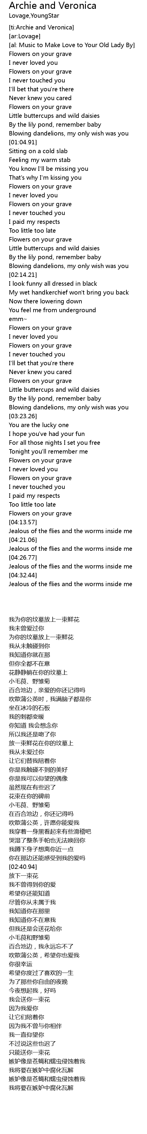 | [00:40.73] | Flowers on your grave |