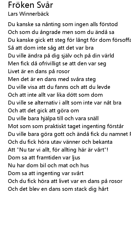 | Song | Fröken Svår |
