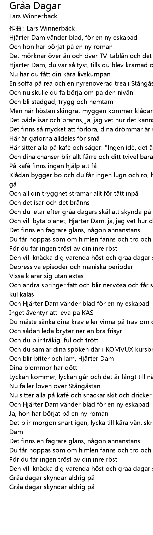 | Det blir morgon snart igen, lycka till k ra v n, skriv om dr mmar Hj rter Dam | |