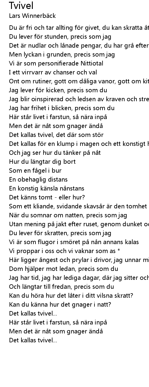 | Som ett kliande, svidande skavs r r den tomhet som kvarst r | |