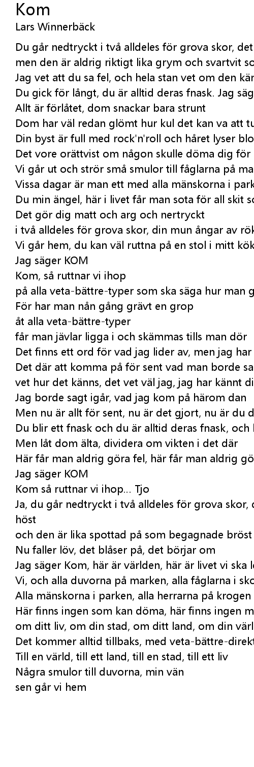 | Jag s ger Kom, h r r v rlden, h r r livet vi ska leva i | |