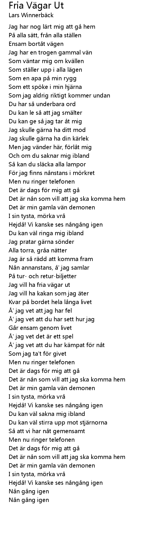 | Song | Fria Vägar Ut |