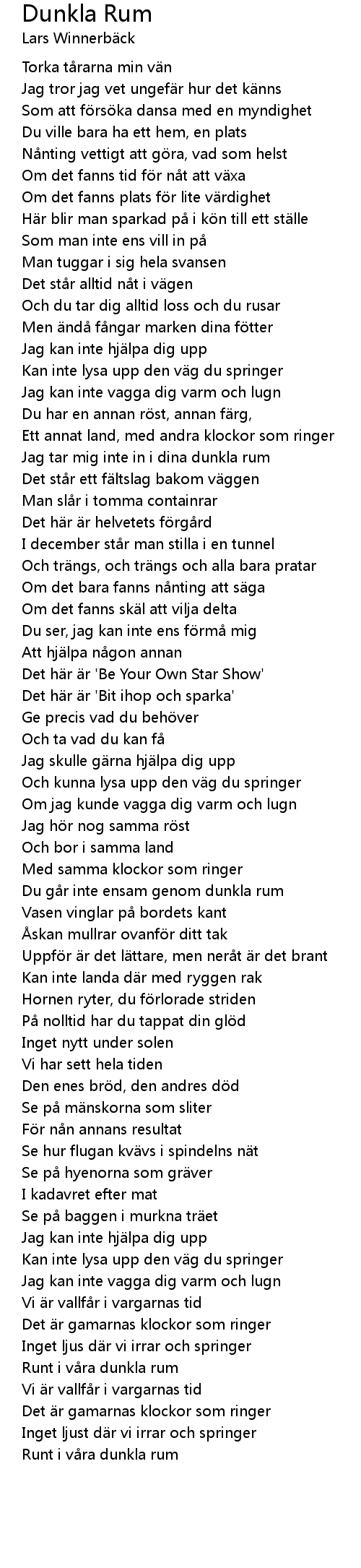 | Jag tar mig inte in i dina dunkla rum | |