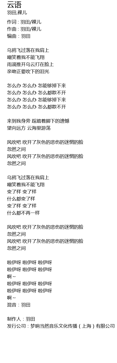 | 发行公司:梦响当然音乐文化传播(上海)有限公司 |