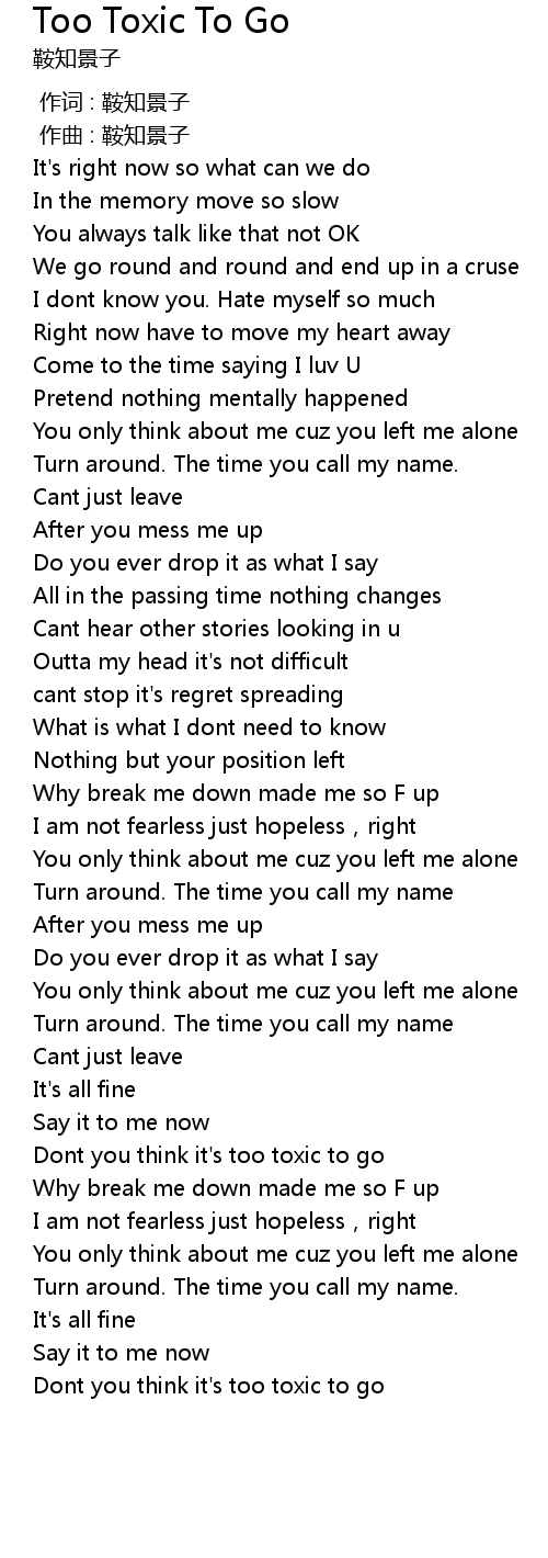 | [02:42.73] | Dont you think it' s too toxic to go |