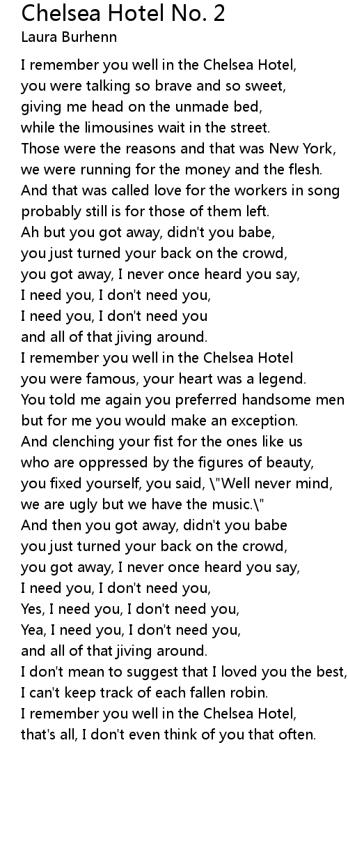 I remember you well in the Chelsea Hotel |