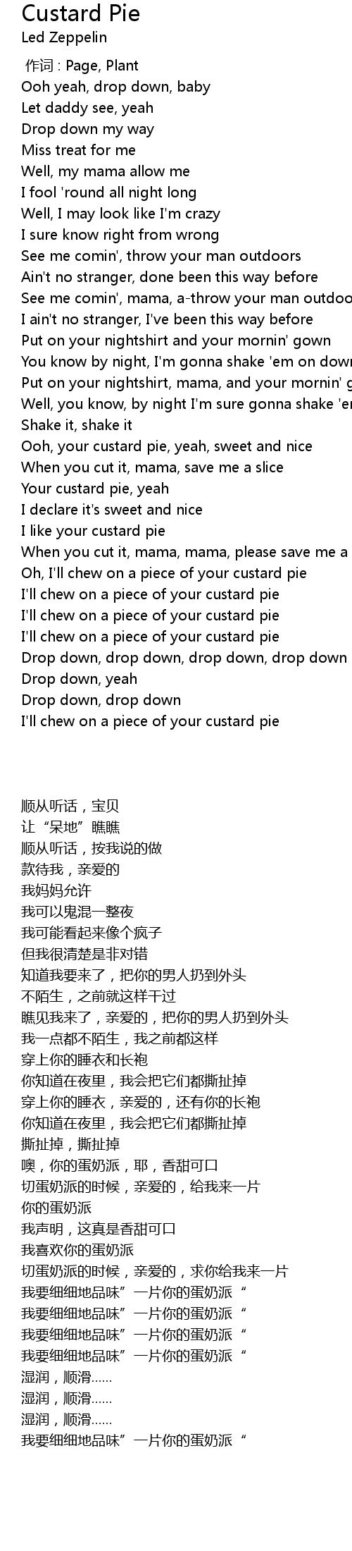 | [02:12.39] | Ooh, your custard pie, yeah, sweet and nice |