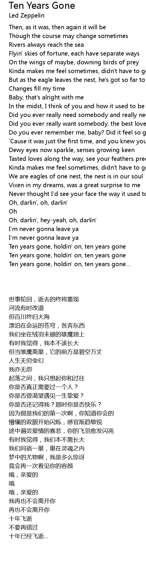 Ten years gone, holdin' on, ten years gone... |