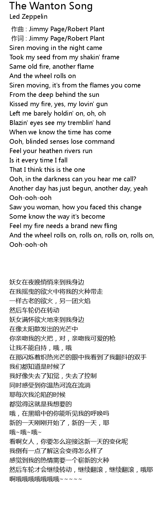 | [00:01.00] | 作词 : Jimmy Page/Robert Plant |