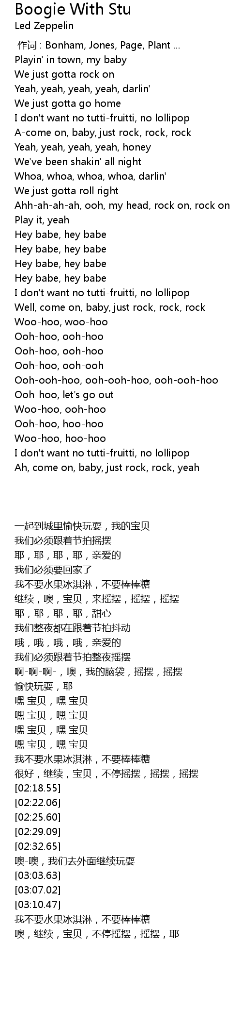 | [00:00.00] | 作词 : Bonham, Jones, Page, Plant ... |