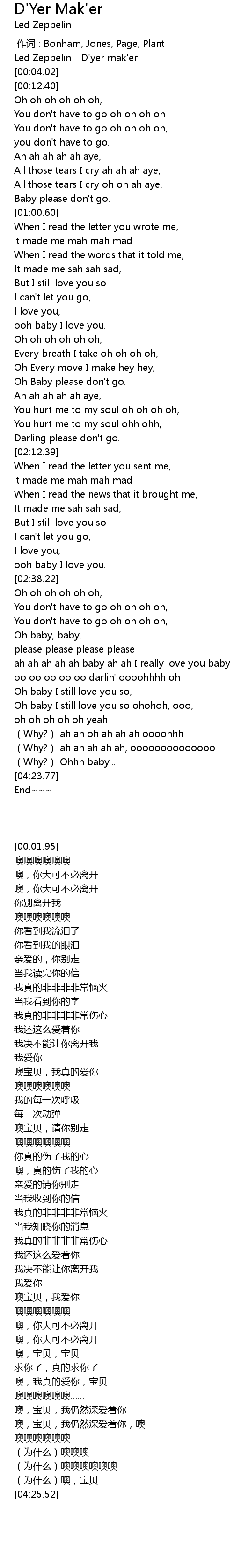 | [00:01.95] | Led Zeppelin D' yer mak' er |