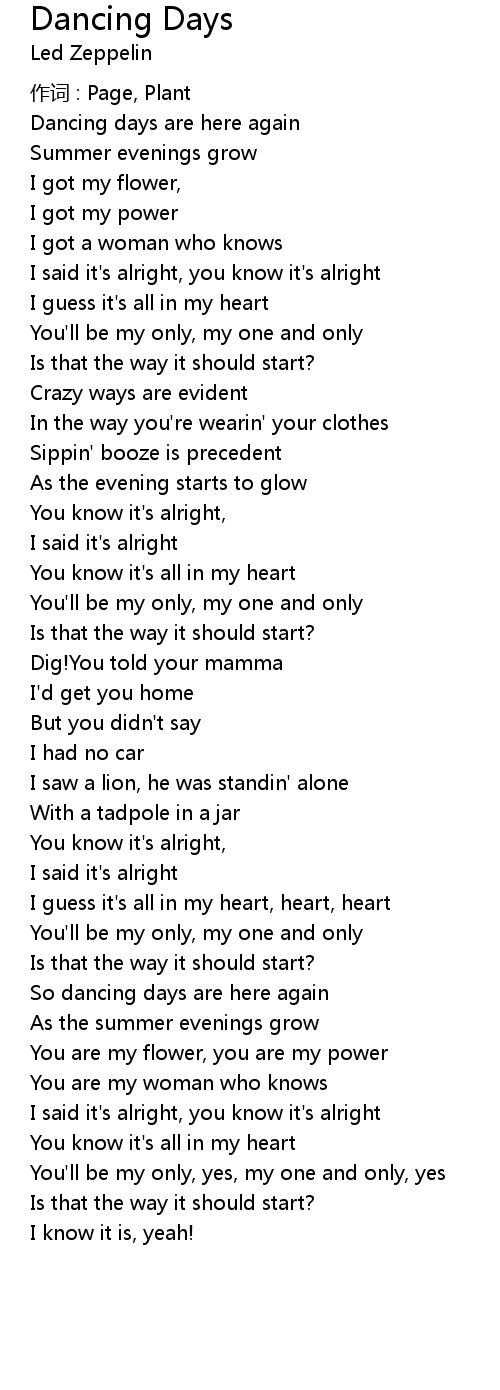 | Song | Dancing Days |