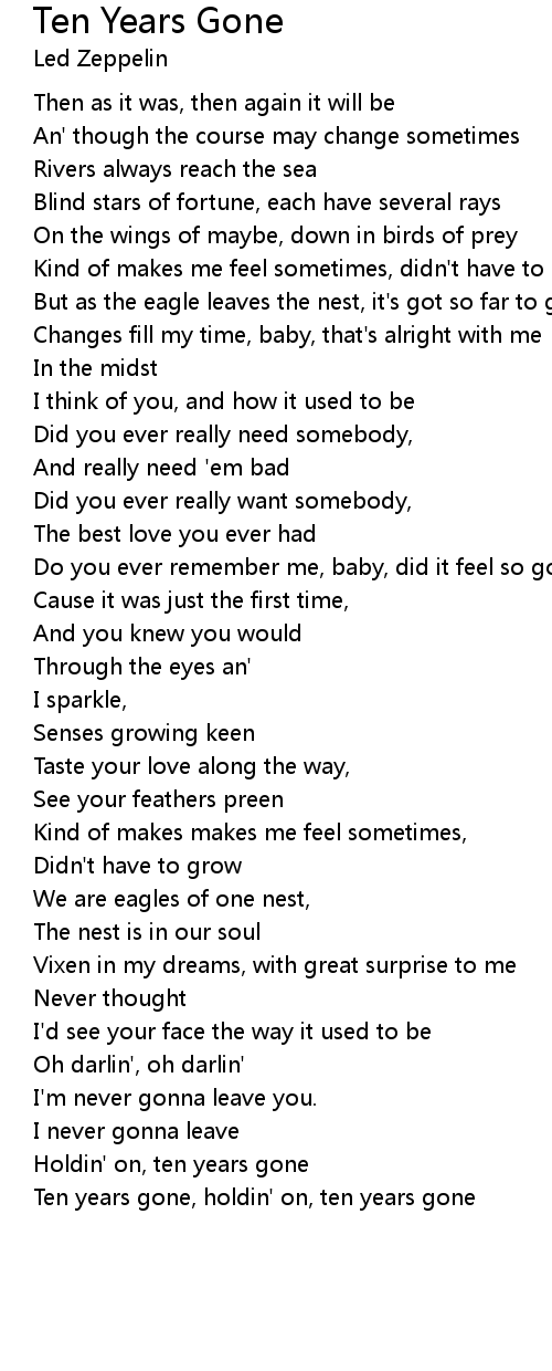 Ten years gone, holdin' on, ten years gone |