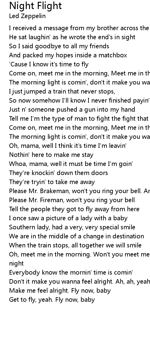 Make me feel alright. Fly now, baby |