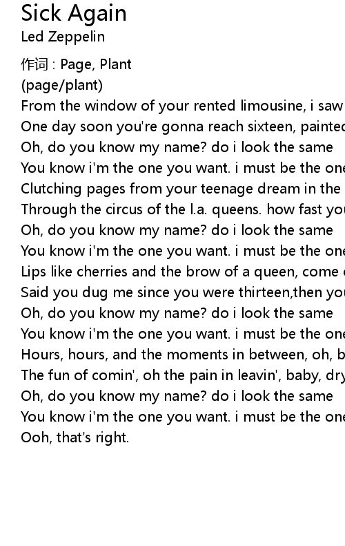| Oh, do you know my name? do i look the same | |