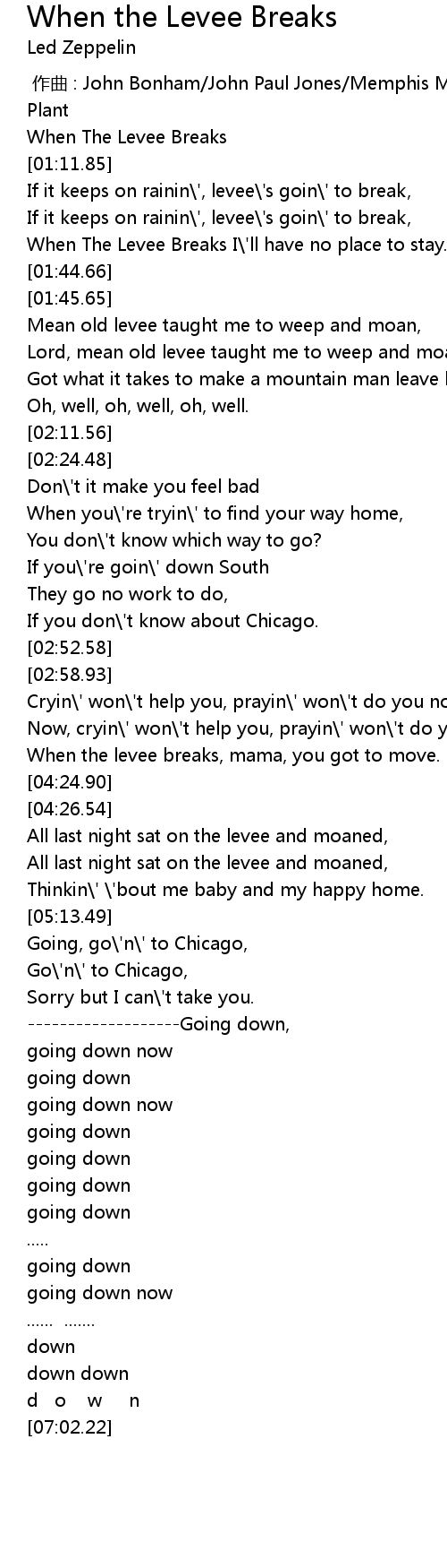 | [01:37.22] | When The Levee Breaks I\'ll have no place to stay. |