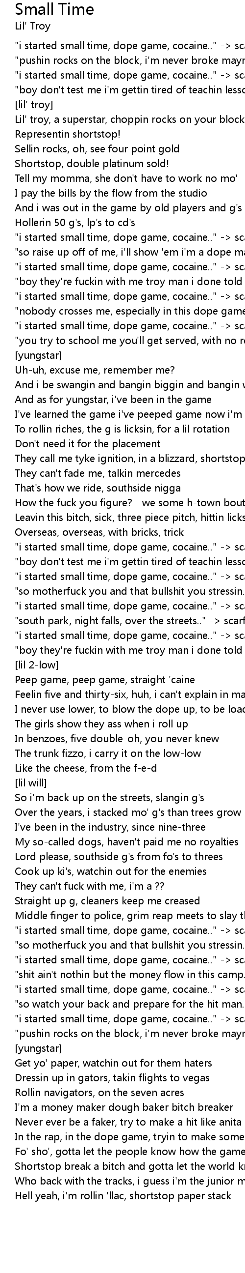 | Lil' troy, a superstar, choppin rocks on your block | |