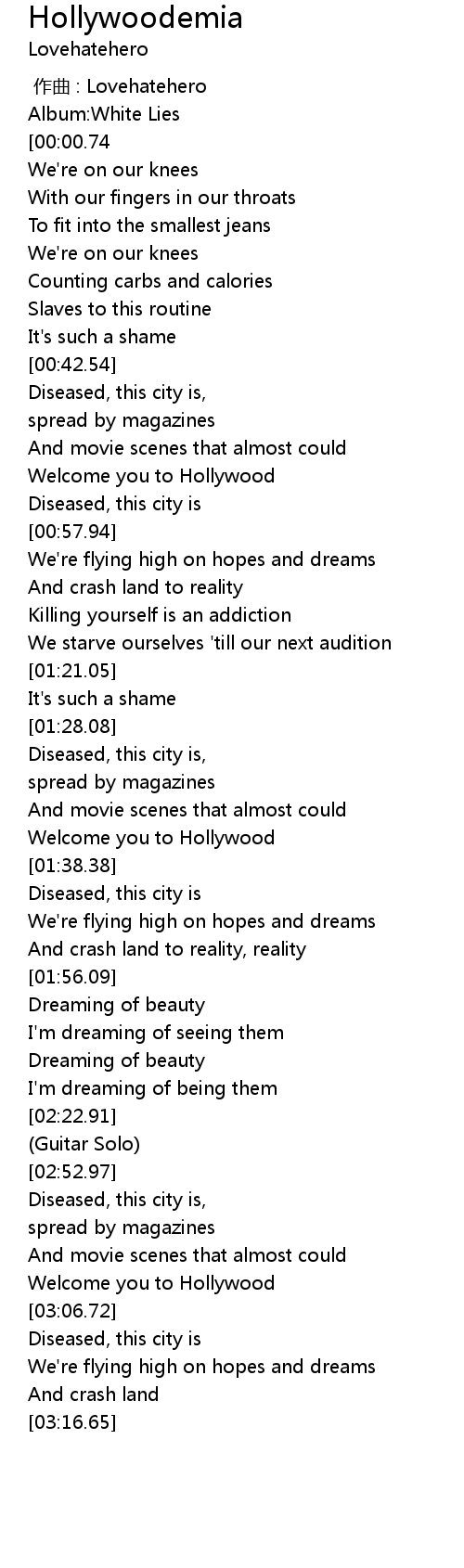 | [01:11.90] | We starve ourselves 'till our next audition |