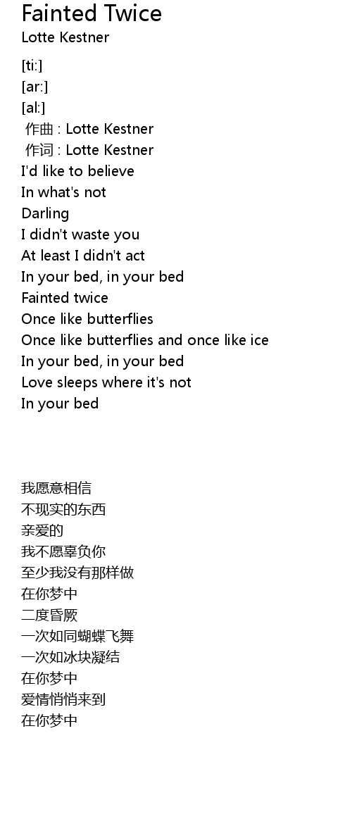 | [00:00.00] | zuò qǔ : Lotte Kestner |