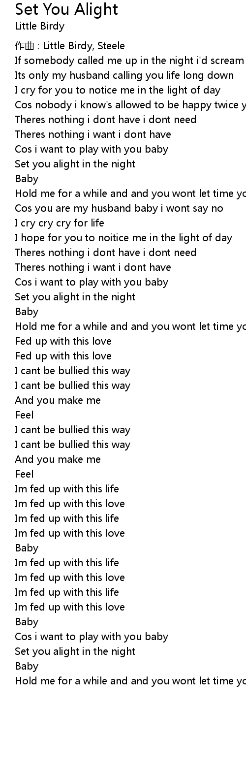 | Song | Set You Alight |