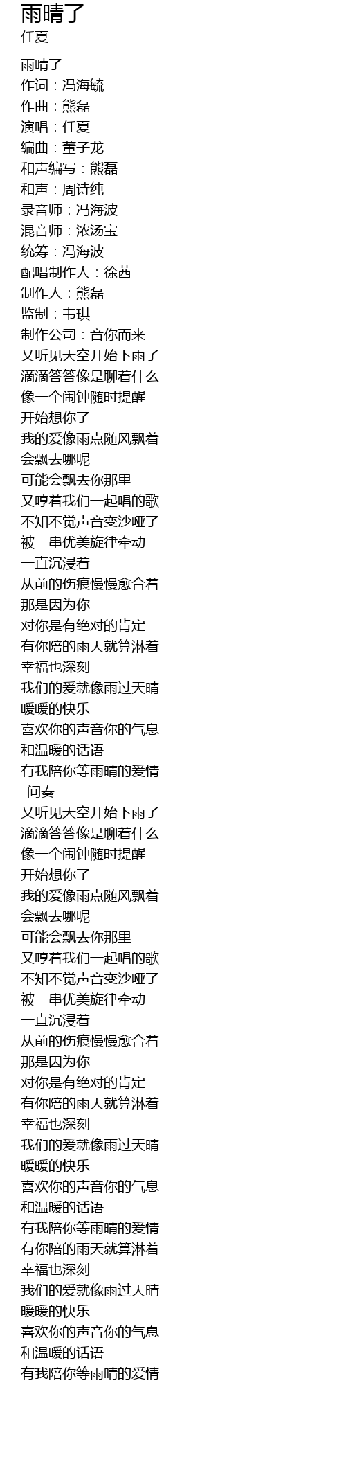| [02:57.21] | 有我陪你等雨晴的爱情 |