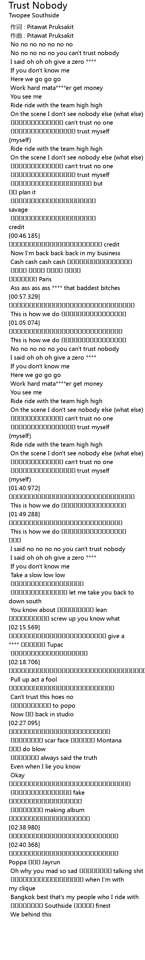 | [01:36.403] | กูไม่ไว้ใจใคร can't trust no one |