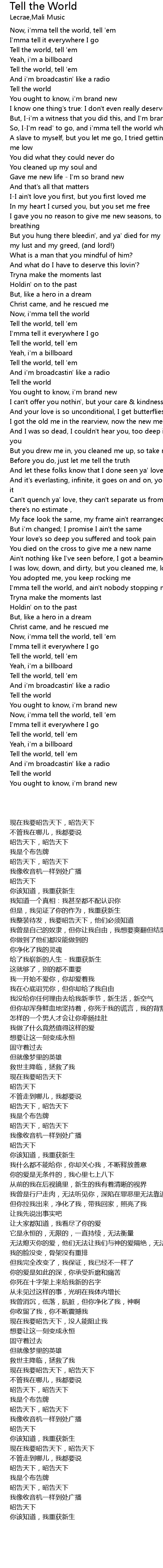 | [00:16.47] | Tell the world |