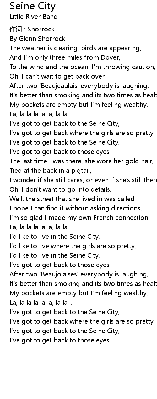 | I' ve got to get back to the Seine City, | |