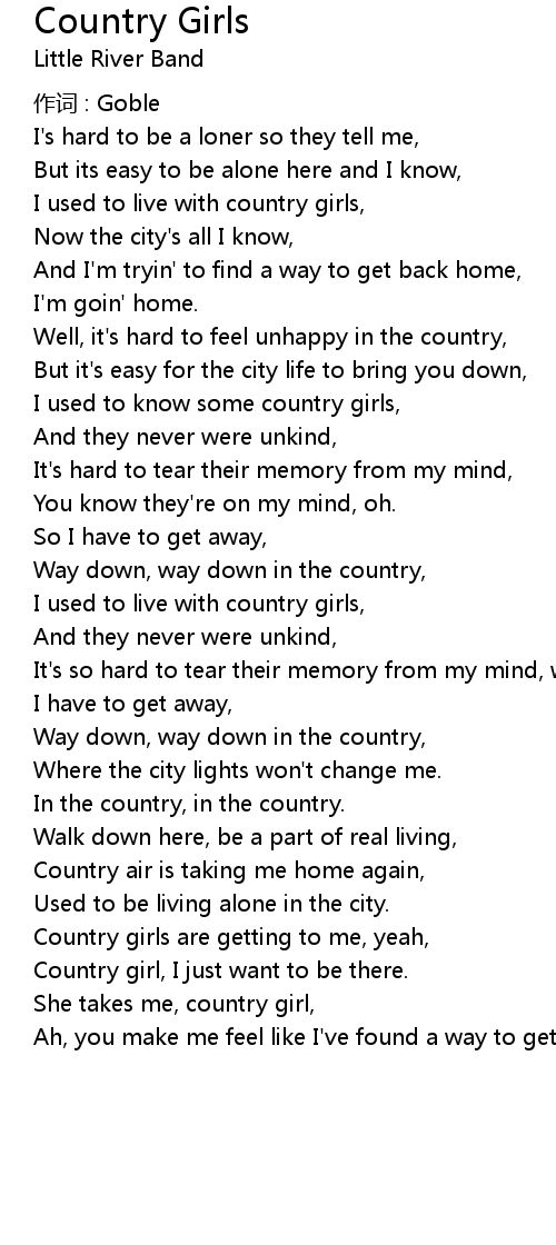 | I used to live with country girls, | |