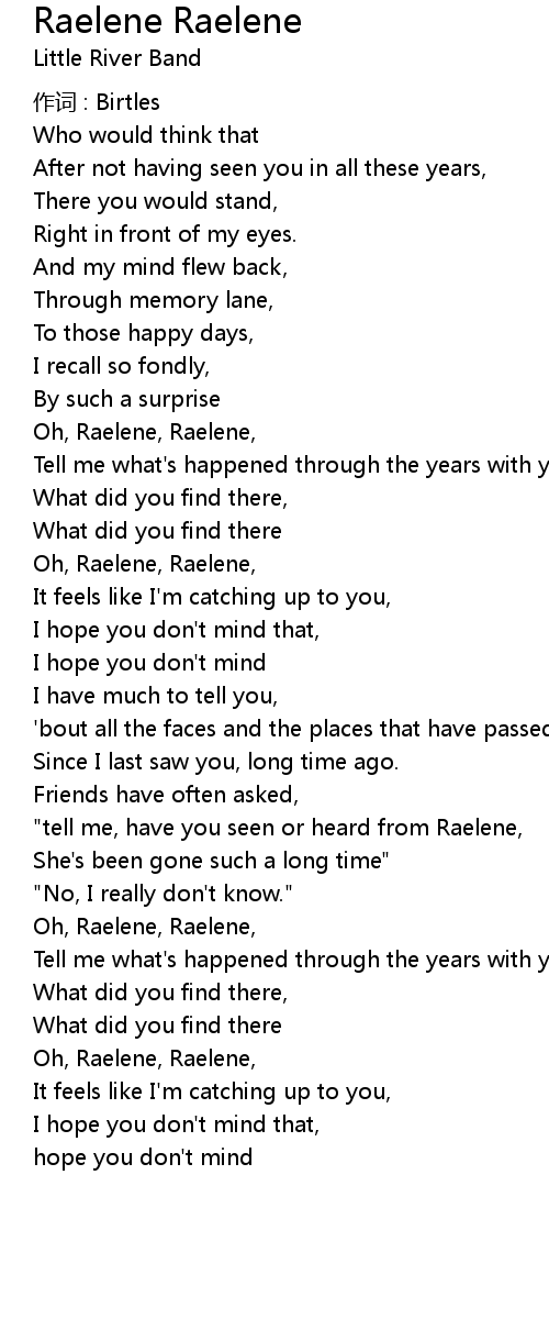 | Oh, Raelene, Raelene, | |